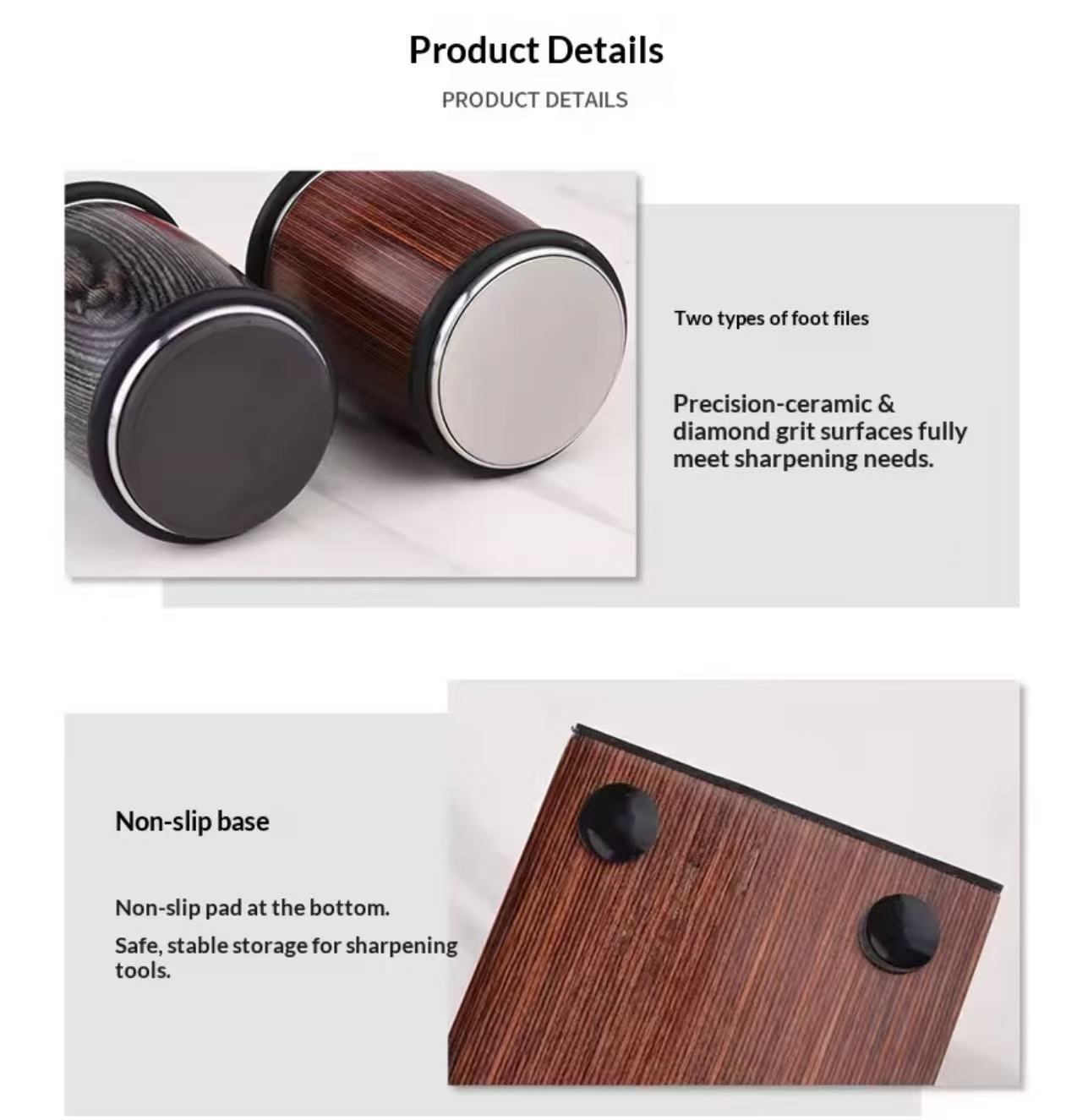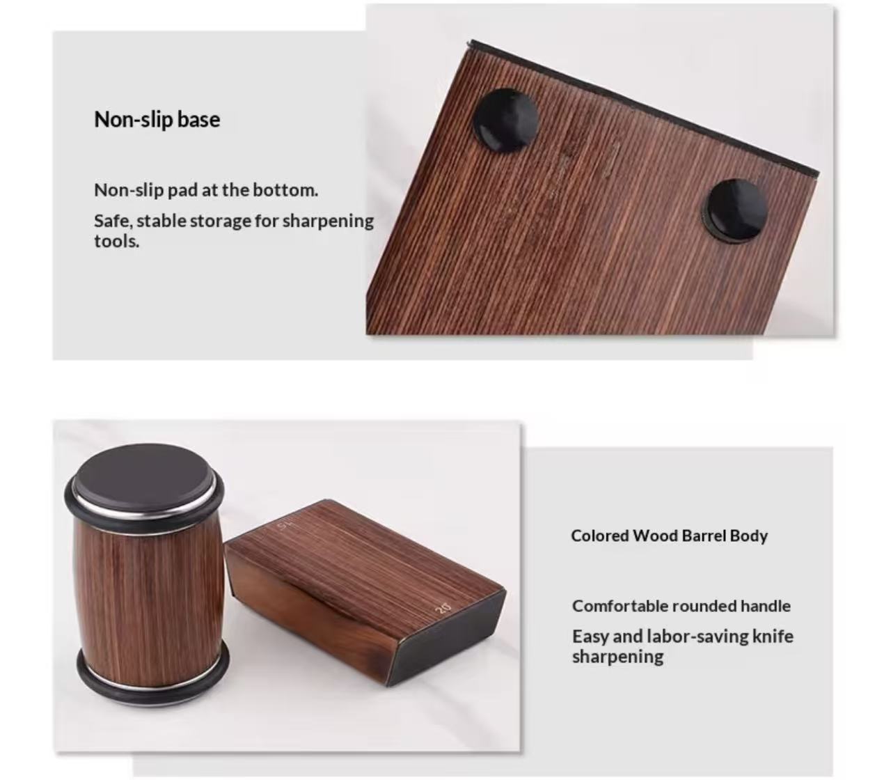 Material: Ceramic, Abrasive Sand, Colored Wood, Silicone Anti-Slip Pad, Stainless Steel 201